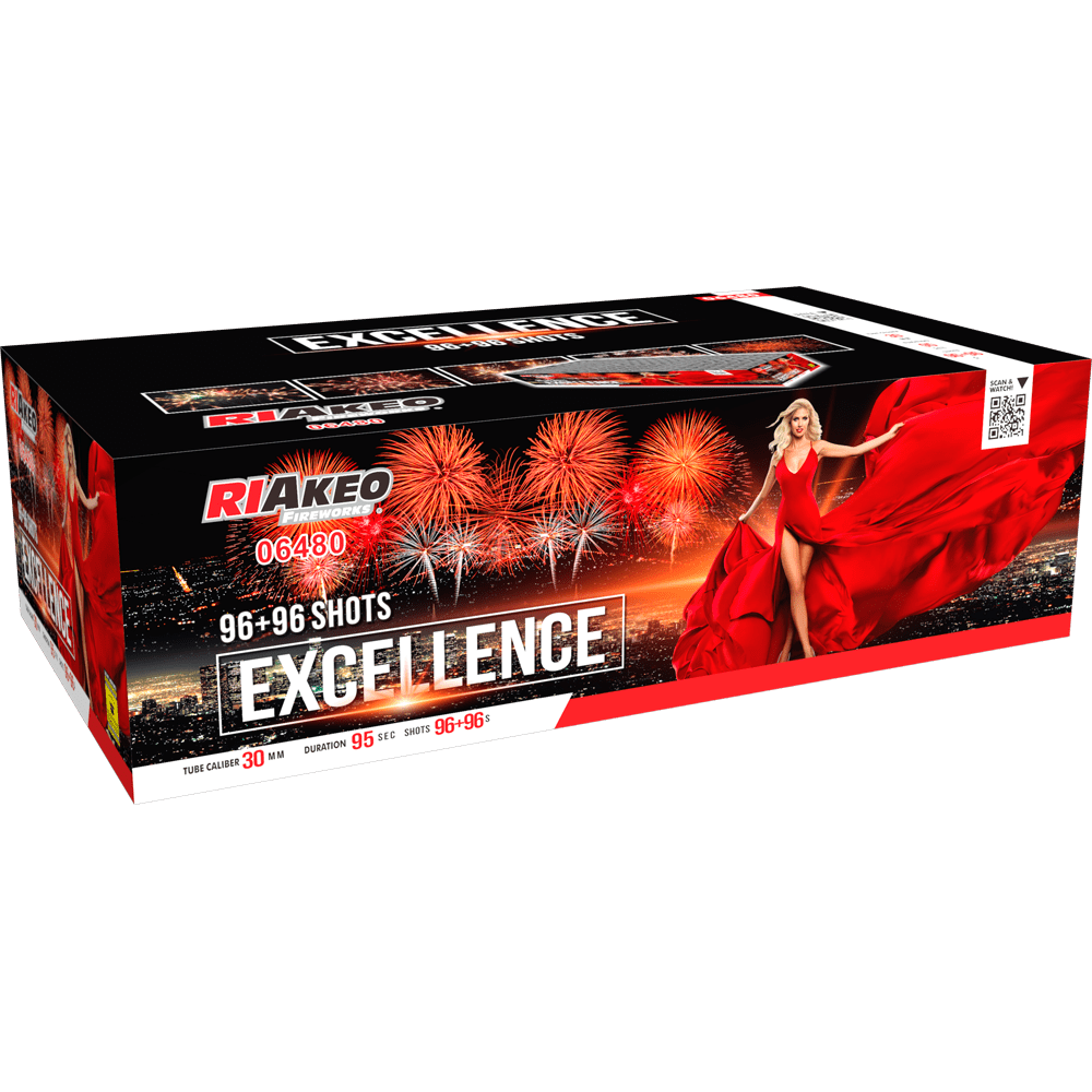 Excellence n nDahlia’s, flower waves, spiders, ejects, willows, chrysanthemums, strobes, glitters, brocades and heel veel verschillende mines. Bedenk het en het zit in deze mega compound. Sierlijk tegenover compleet geweld met een fantastische Riakeo finale. Nu al in de race voor beste dubbele compound! n nKaliber 30 n