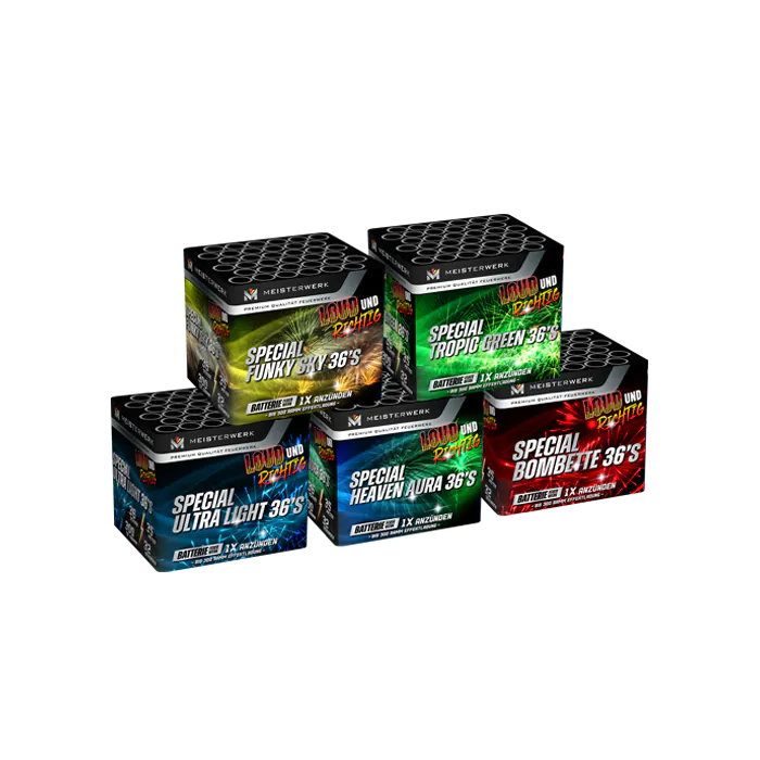 SPECIAL 5 – ASSORTED 5 CAKES n5x een 36 shots cake met prachtige effecten. Maximaal gevuld en extra voordelig! n