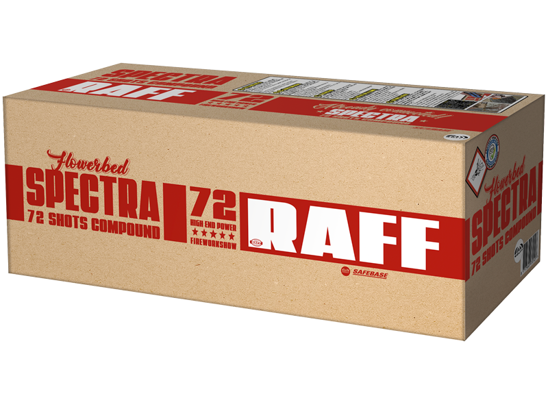 Spectra nPrachtige compound met 72 schoten, die heerlijk afsluit met een waaier! Echt een topperr! n nKruitgewicht 929 Gram nTube diameter 25 nBrandtijd 53 Seconden nHoogte 25 m. – 30 m. Spectra Goedkoop vuurwerk kopen bij Vuurwerkwinkel Breda